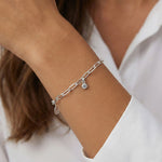 A modern and meaningful bracelet that brings effortless shine to your everyday style. The Sterling Silver Paperclip Birthstone Bracelet pairs sleek elongated links with a single sparkling crystal charm, creating a look that feels personal and polished. Wear it alone for subtle elegance or layer it to add a soft hint of sparkle.