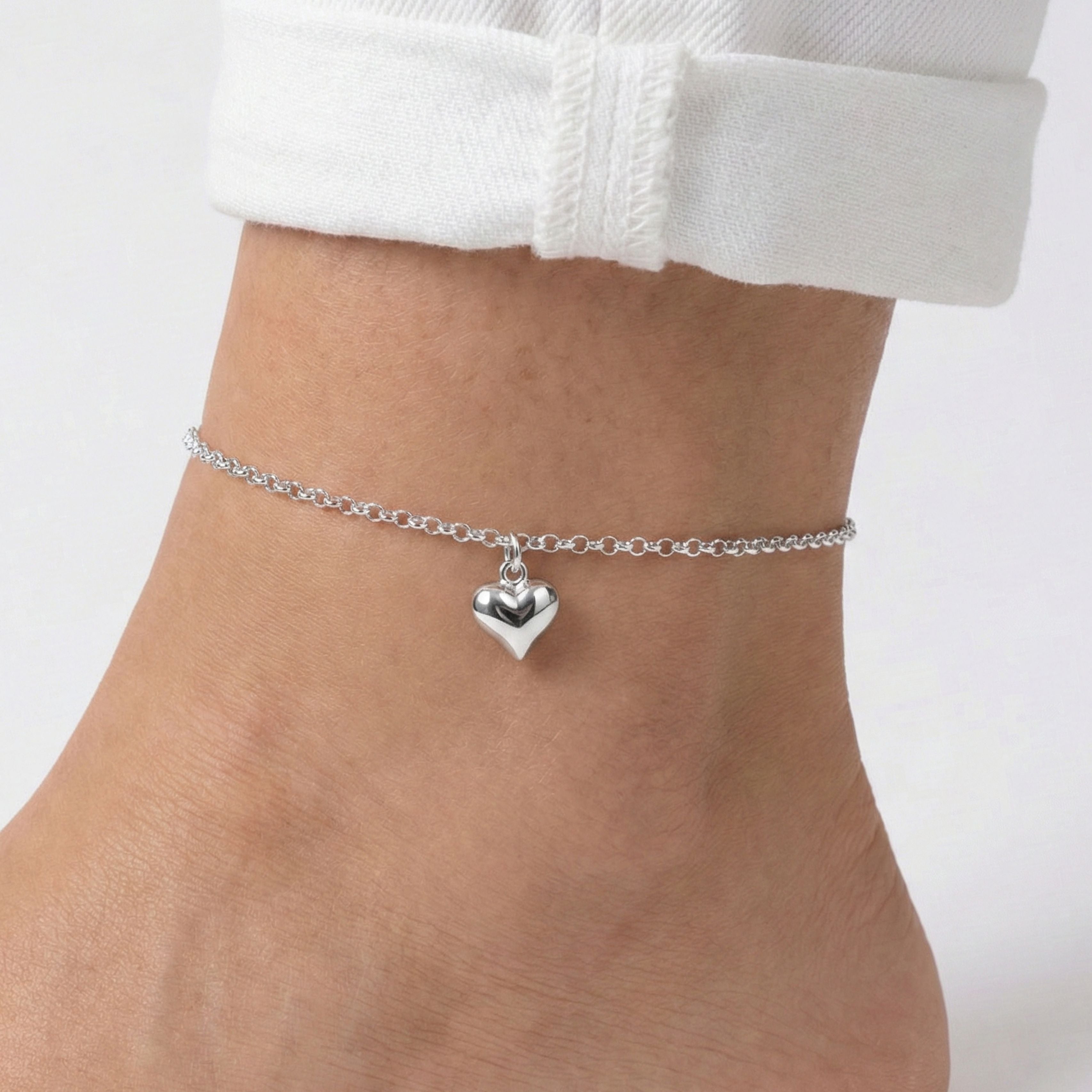 Show your ankle some love this season. The Sterling Silver Mia Heart Anklet. Crafted from a beautiful rolo chain with the bestselling Mia Puffed Heart charm. Elevate your look from head to toe (literally).