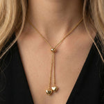 The Twin Hearts Adjustable Necklace in Gold features two heart pendants suspended from an elegant adjustable chain. A romantic piece that’s perfect for layering or gifting, designed to celebrate connection in style.