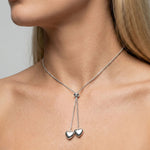 Twin Hearts Adjustable Necklace in Silver