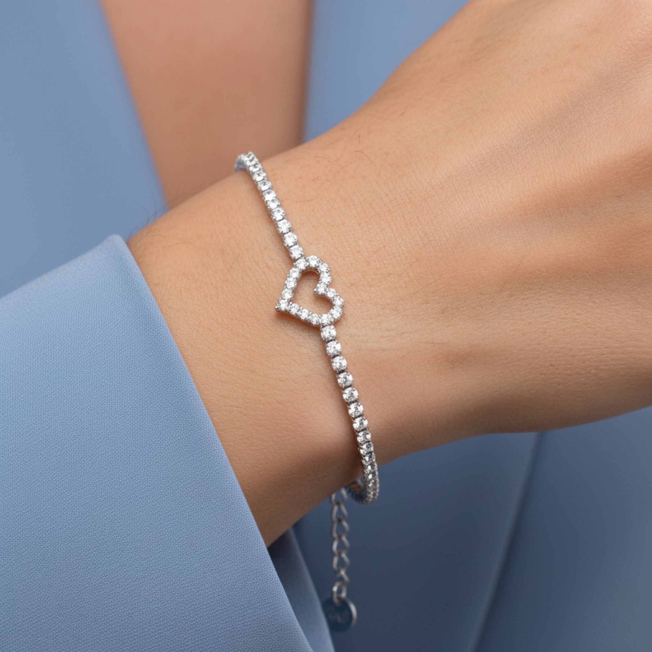 Design: Classic tennis strand with open heart centre