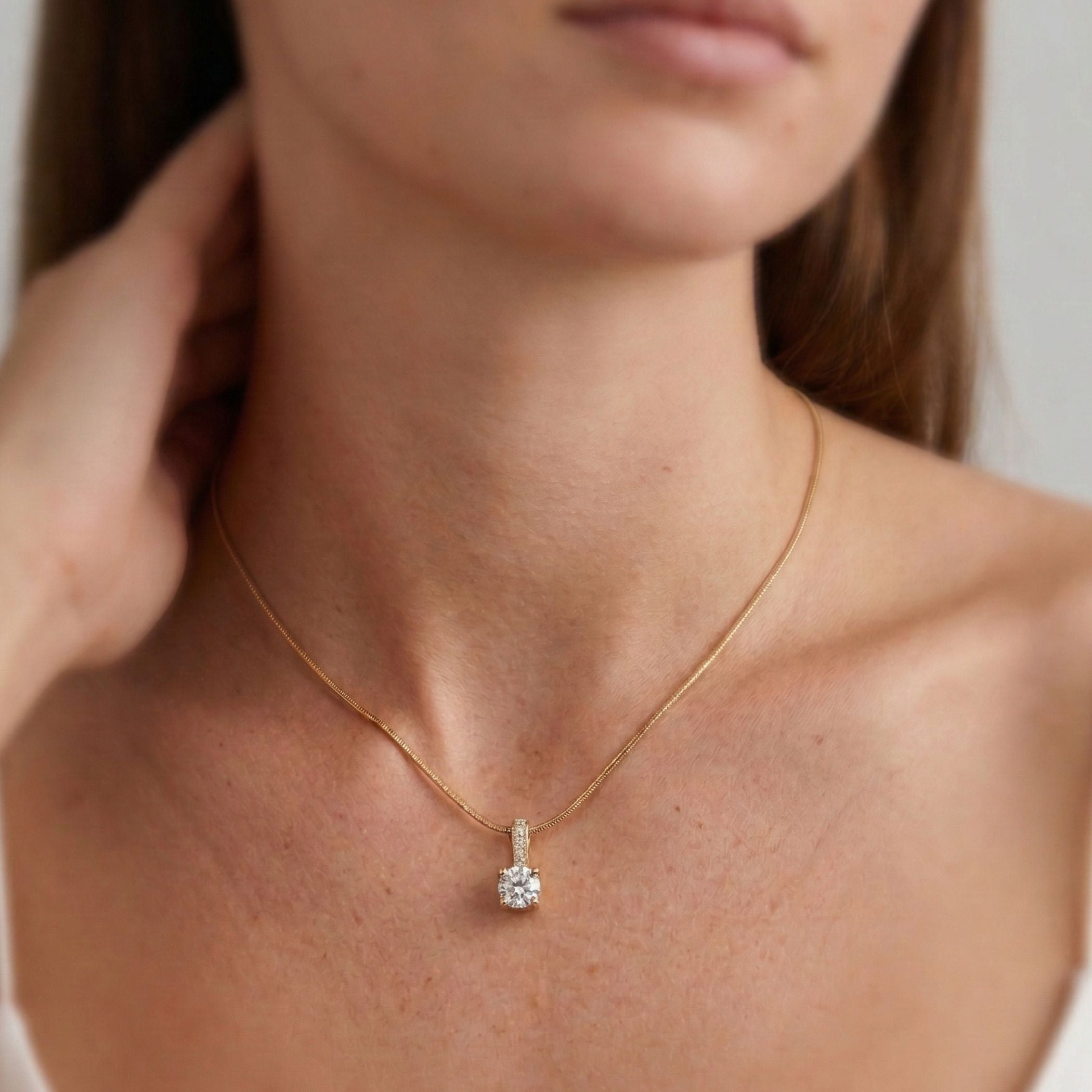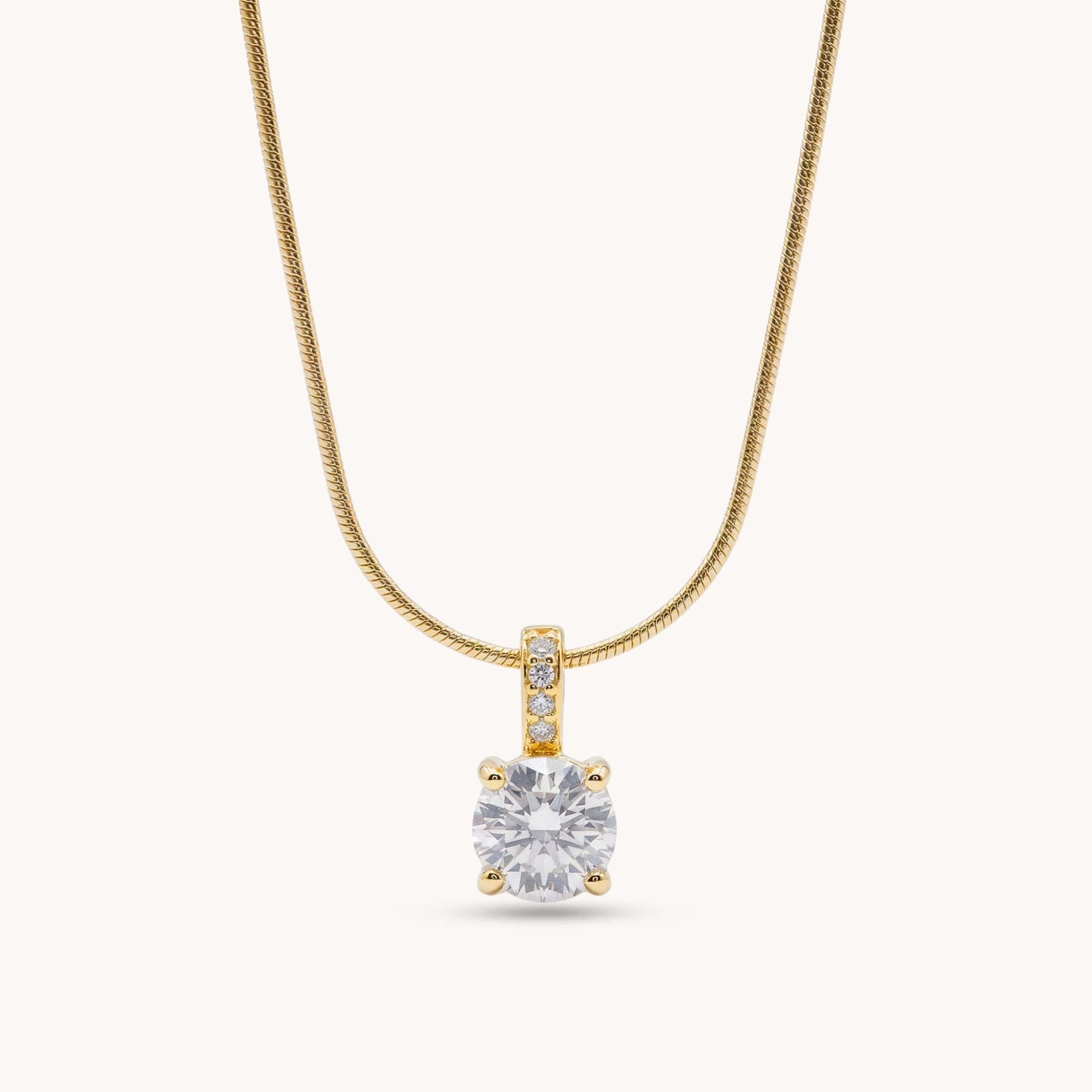 A gold solitaire necklace that brings effortless sparkle and timeless elegance to any outfit.