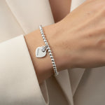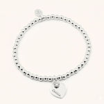 Delicate and timeless, this bracelet features polished sterling silver beads finished with a smooth heart charm engraved with your chosen name or initial, paired with a sparkling crystal birthstone. A personal touch of elegance that makes it perfect for gifting or everyday wear.