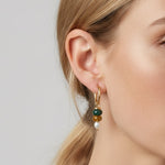 A golden hour palette of deep forest green, amber, and pearl – these warm-toned drops add richness to any stack.