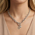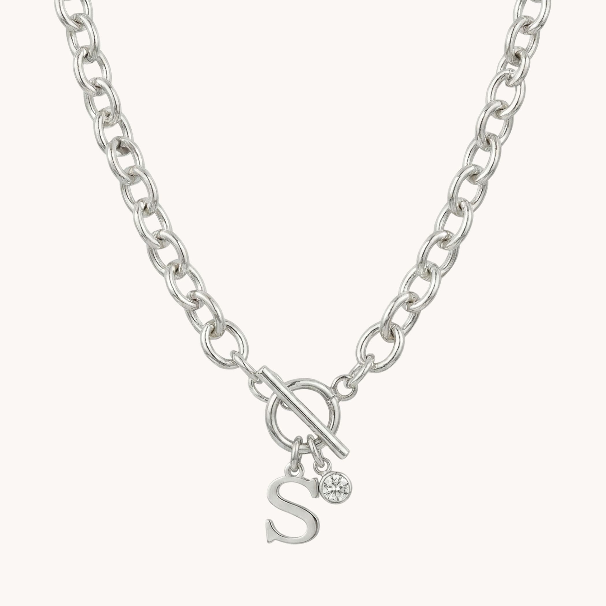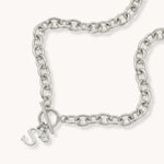 Initial & Birthstone Chunky Necklace in Silver