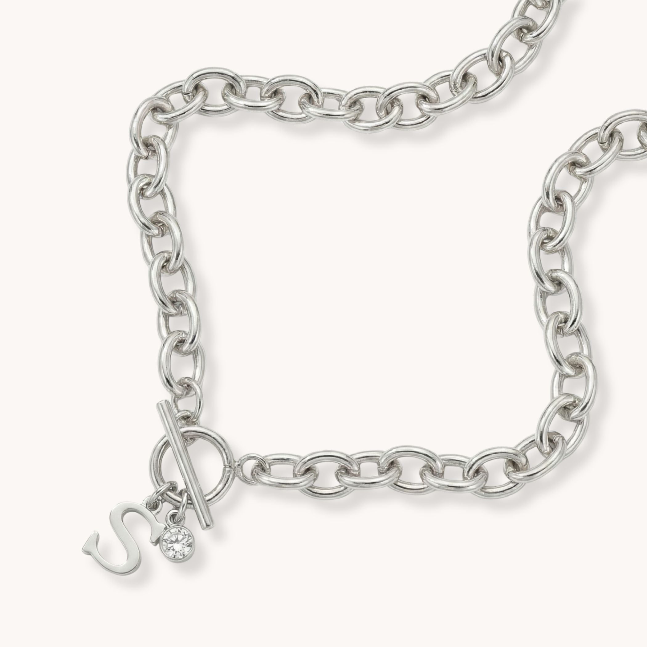 Designed with a bold stainless steel chain and unique toggle clasp, this piece lets you personalise your look with your chosen initial and birthstone. A meaningful statement that’s both timeless and contemporary.