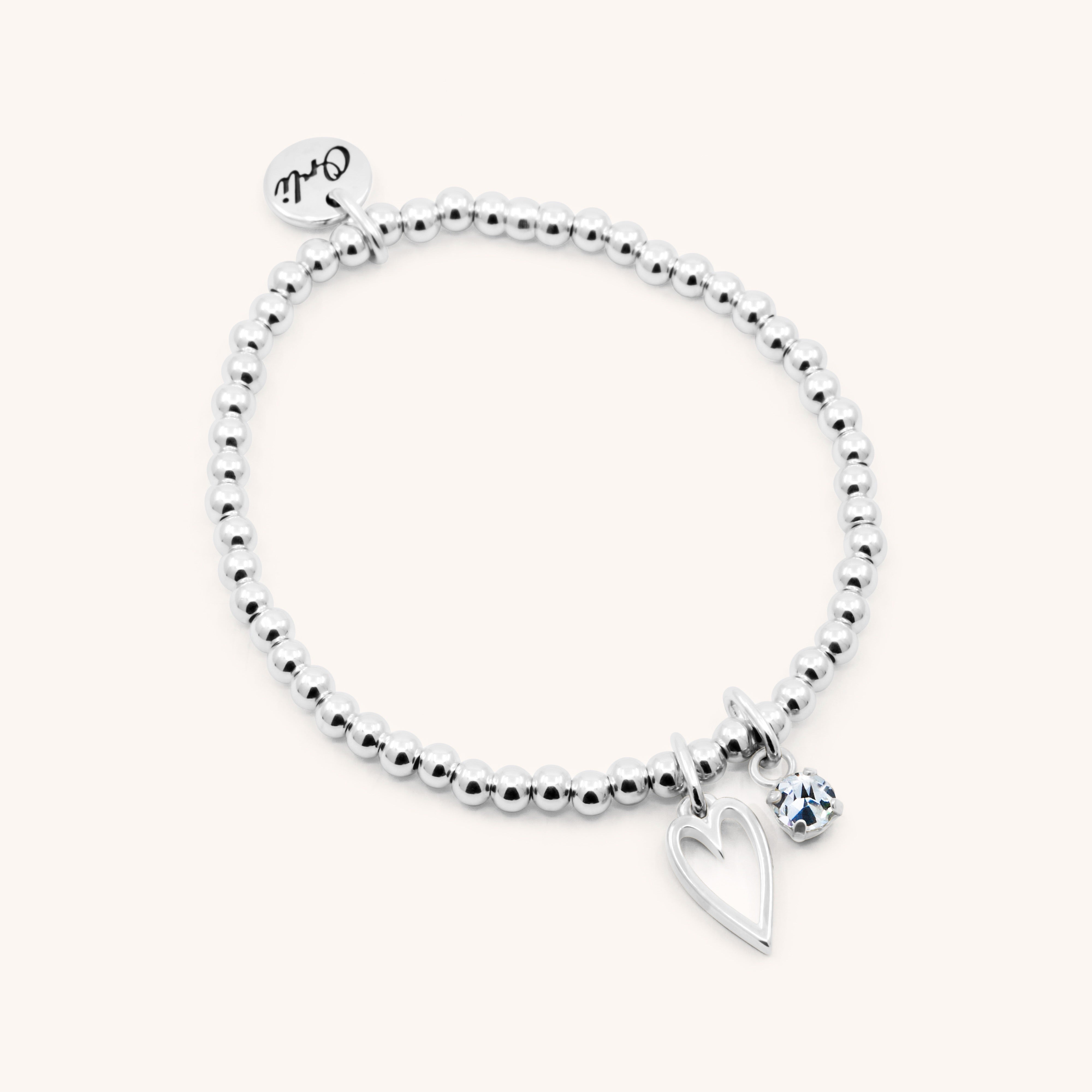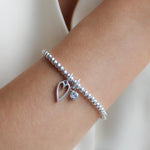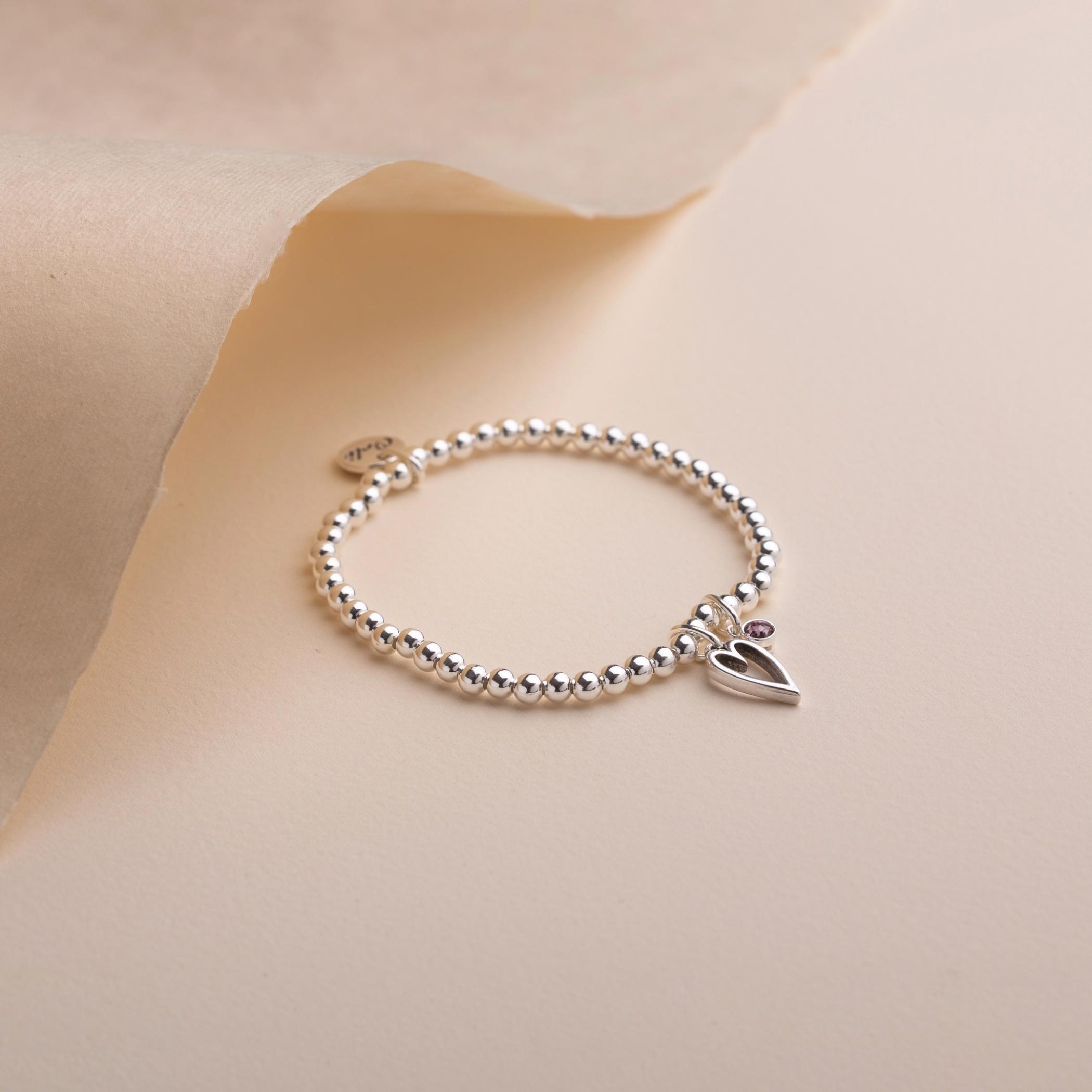 Mini Open Heart & Birthstone Beads Bracelet, Silver
