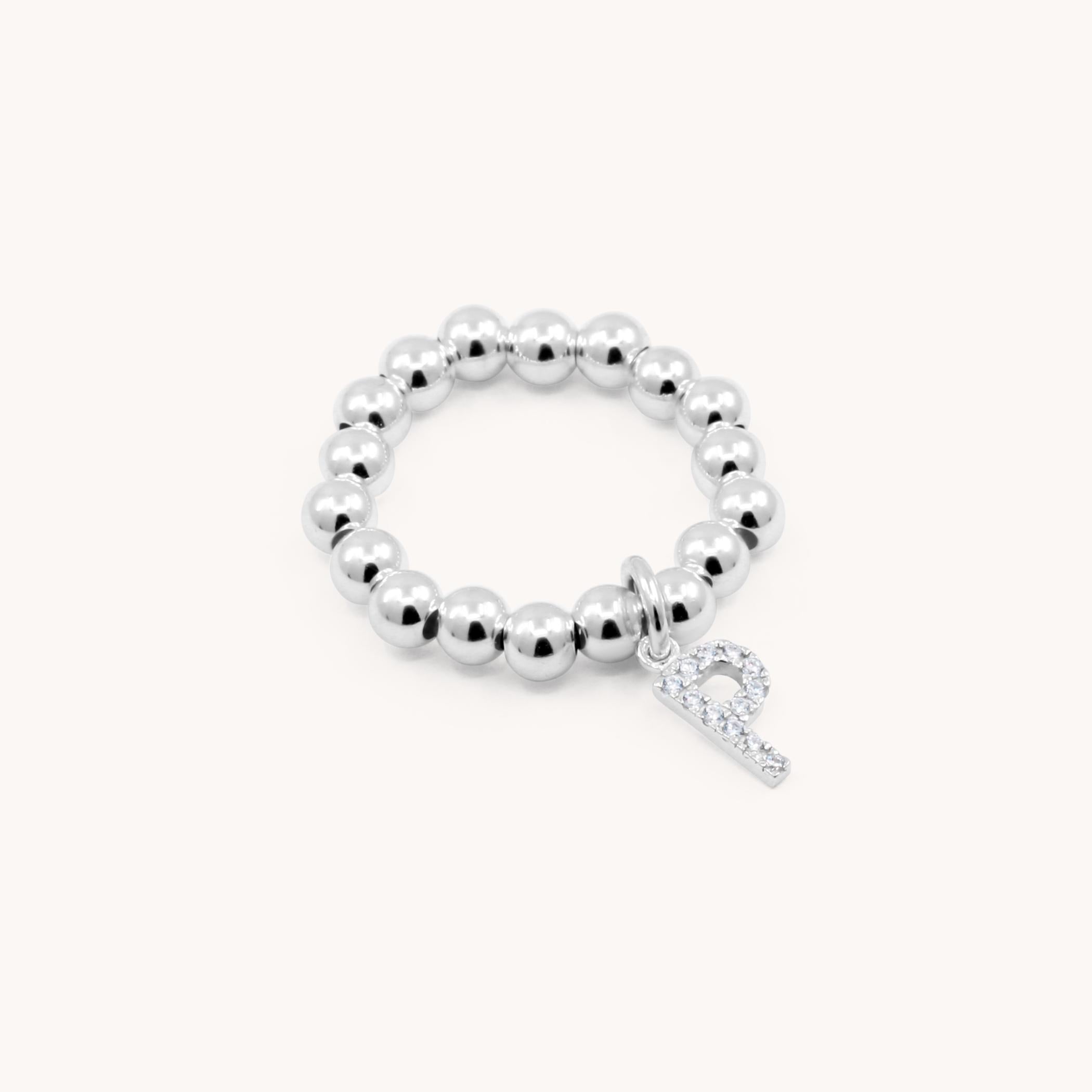 Sterling Silver Personalised Crystal Initial Beads Ring