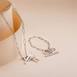 Hourglass Heart Chunky T-Bar Necklace, Gold & Silver