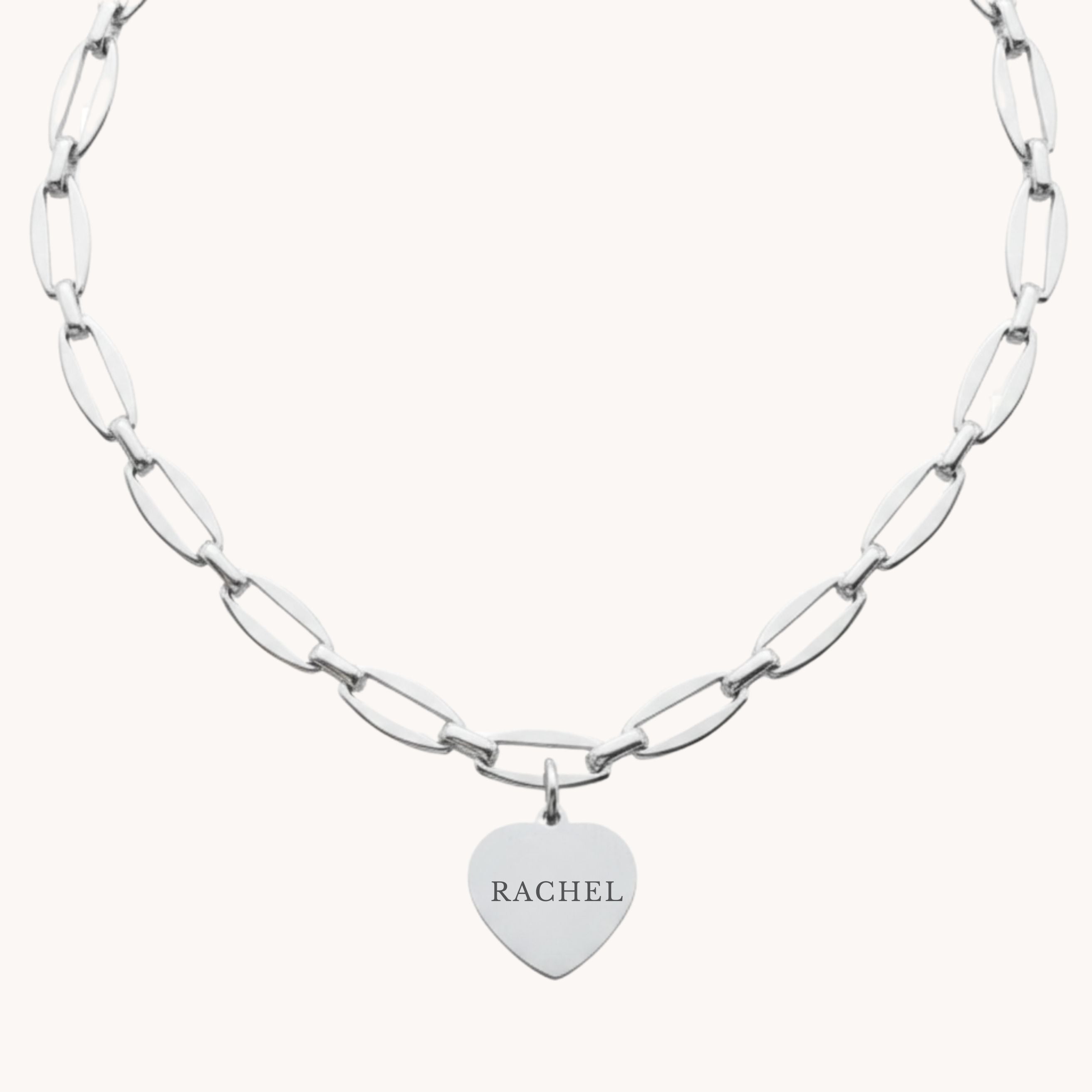 A silver heart necklace with a personal touch — bold, meaningful and perfect for everyday wear or thoughtful gifting.