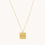 A gold engravable square necklace that’s modern, elegant and meaningful — perfect for layering or gifting.