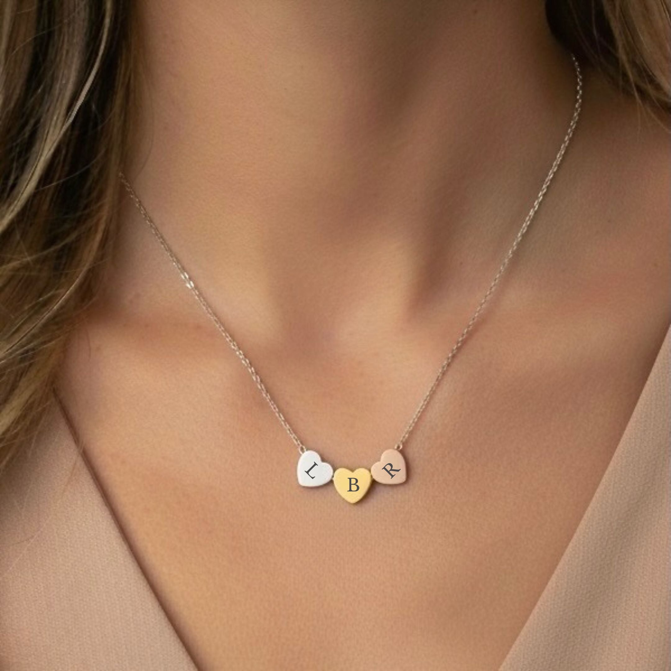 The Triple Heart Necklace in Mixed Metals features three polished heart charms in silver, gold and rose tones — each one representing the people or moments closest to your heart.