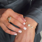 This adjustable ring combines sleek lines with crystal embellishments, making it the perfect blend of elegance and versatility.