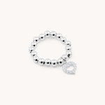 Sterling Silver Olivia Crystal Heart Beads Ring