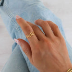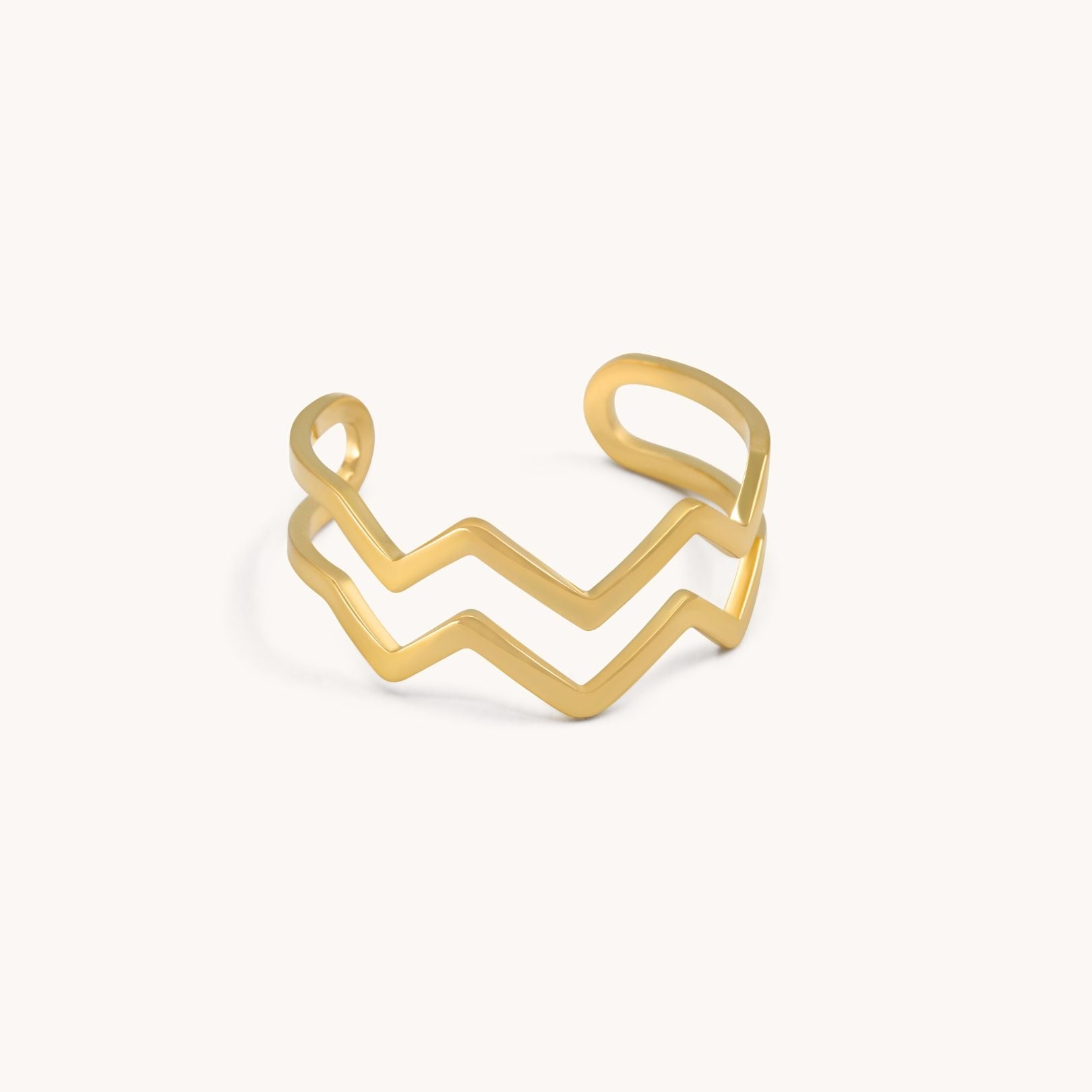 Sleek and modern, this stainless steel ring features a striking double-chevron design, adding a bold yet minimalistic touch to your jewellery collection. With its open cuff style, it offers a comfortable and adjustable fit, making it perfect for everyday wear.