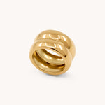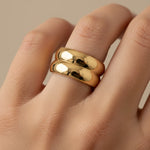 A bold statement ring featuring a sleek double band design. Perfect for adding a touch of elegance to any outfit.
