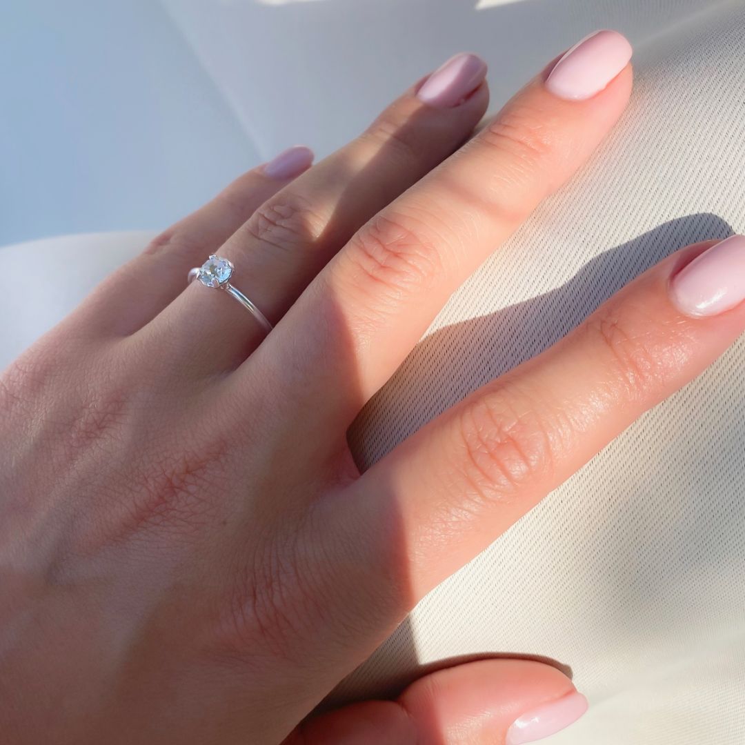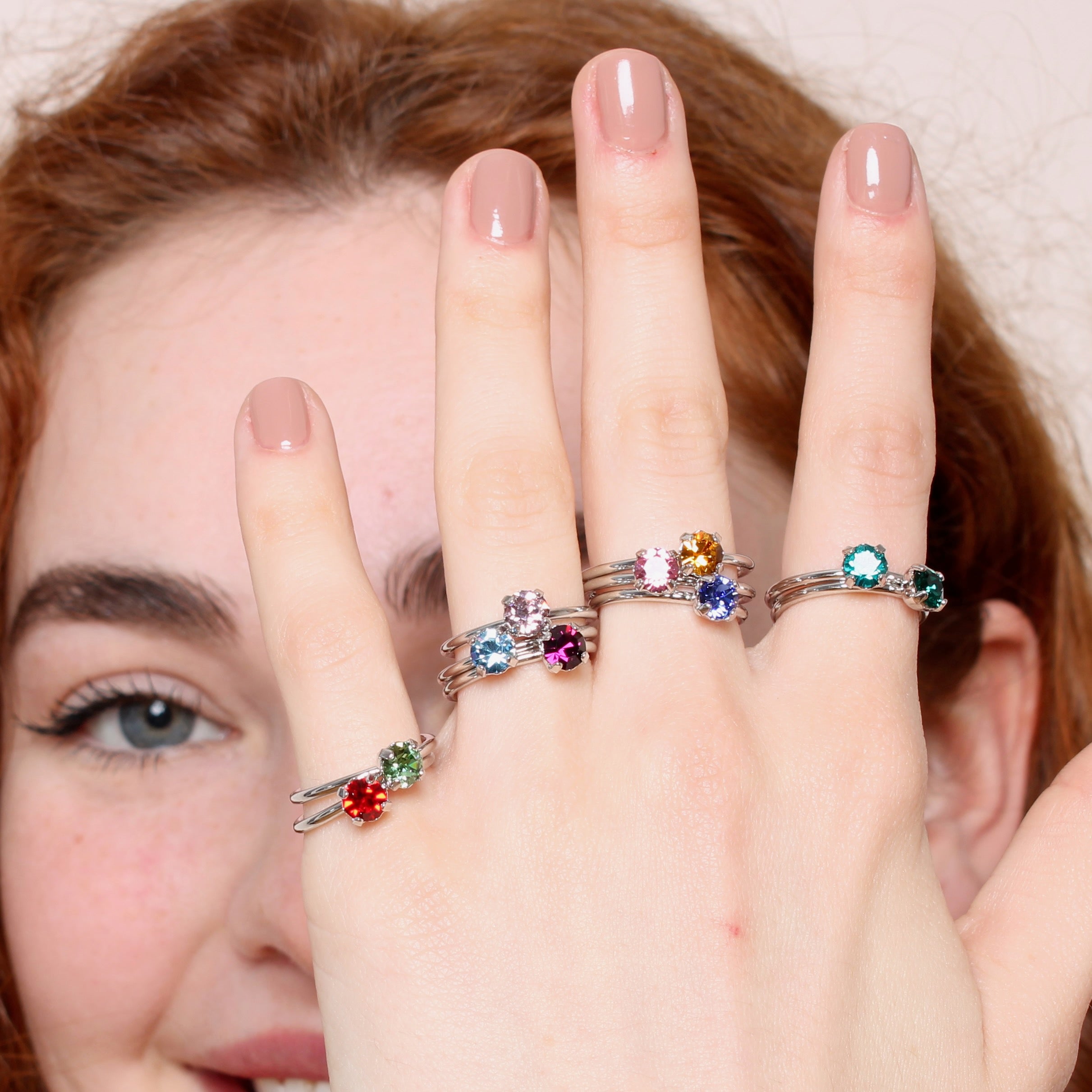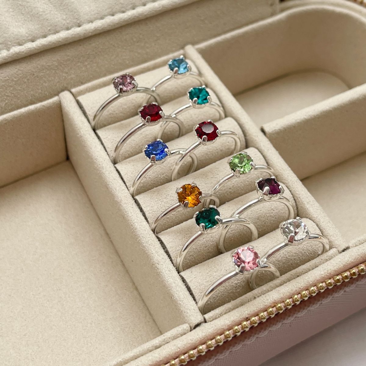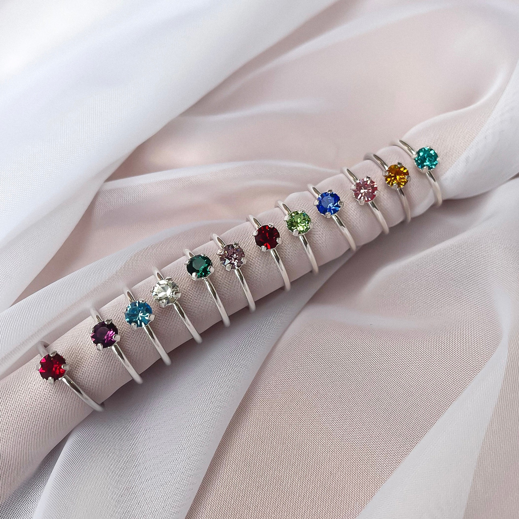 A slim adjustable ring adorned with a glistening birthstone crystal, stackable for the ultimate personalised look