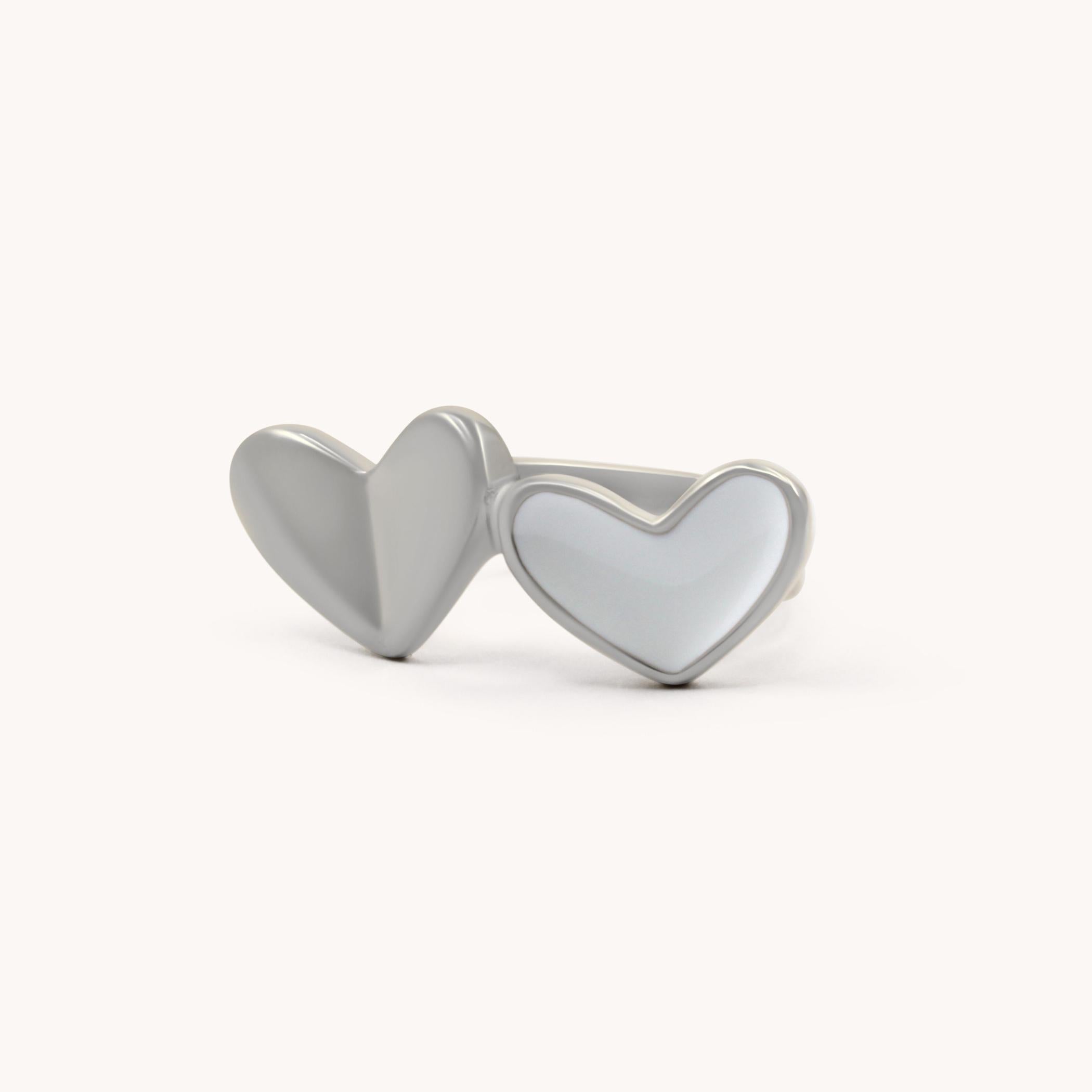 Celebrate love and elegance with this chic dual-heart ring featuring polished gold and smooth white enamel finishes. Perfect for adding a touch of romance to your look.