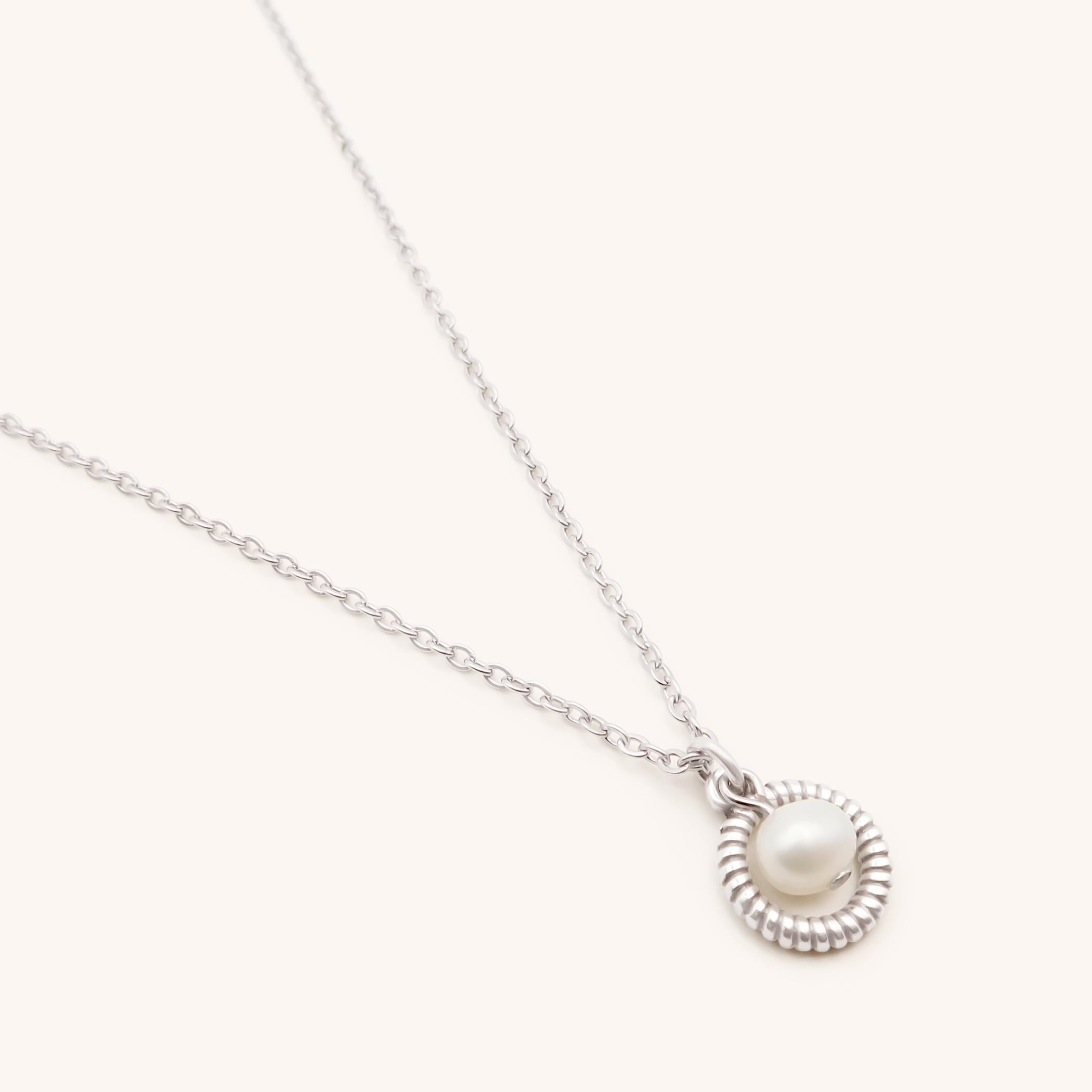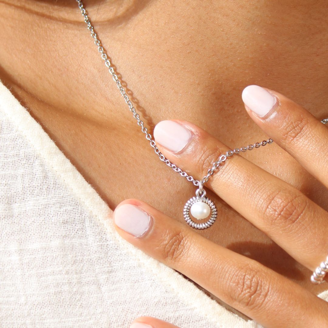 A necklace that will never let you down. The Halo Necklace in silver features a pearl inside a textured circular design, creating a timeless piece that is the perfect addition to your jewellery collection. Wear it alone, or layer with other necklaces to curate your own personal look.