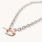 Hammered Heart T-Bar Necklace, Silver & Rose Gold