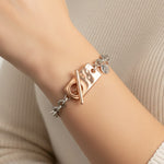 Hammered Rectangle T-Bar Bracelet, Silver & Rose Gold