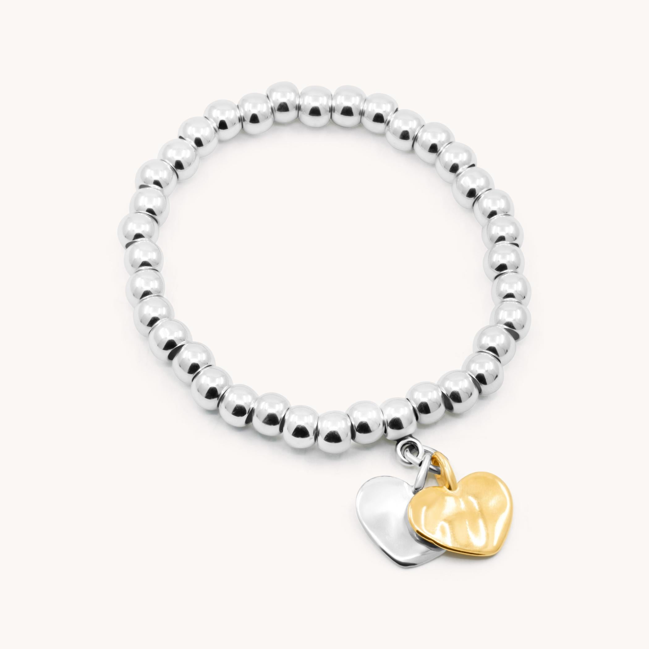 Twin Hayley Heart Chunky Beads Bracelet, Silver and Gold