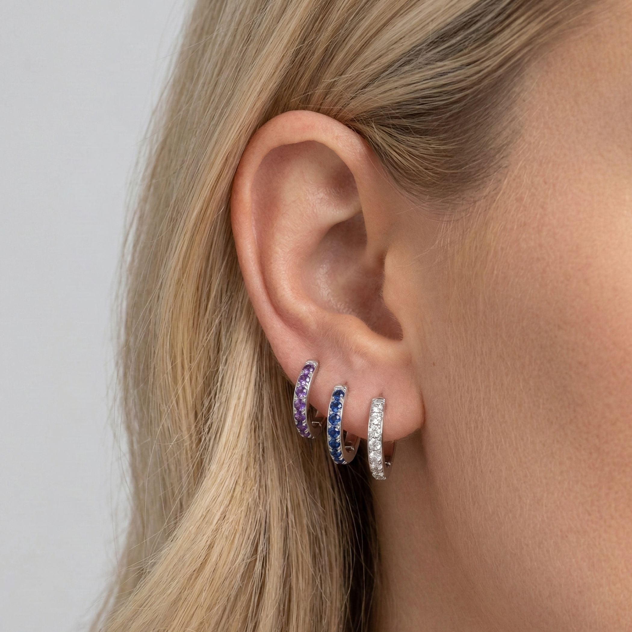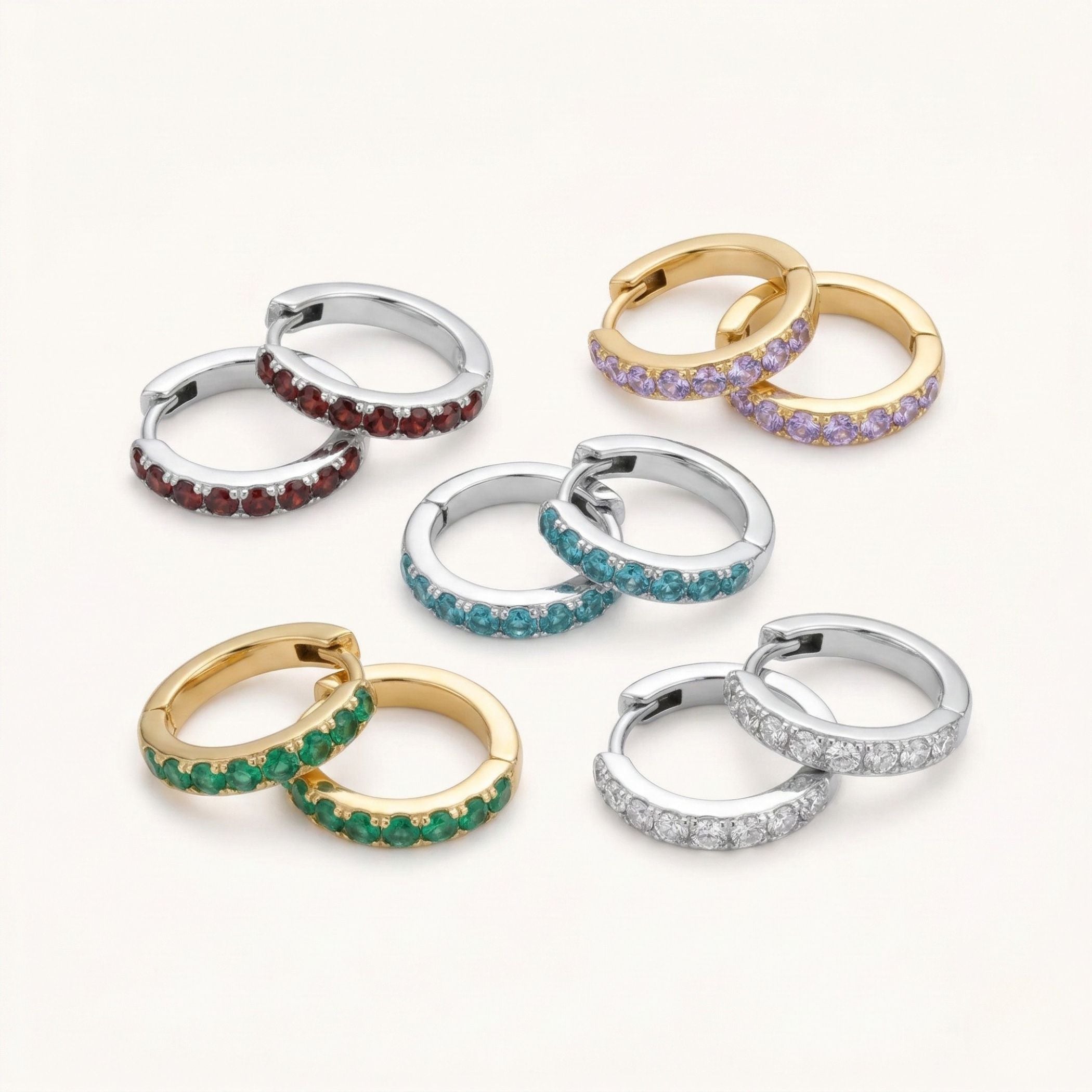 Birthstone Pavé Huggie Hoops in Silver