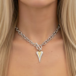 Hourglass Heart Chunky T-Bar Necklace in Silver & Gold