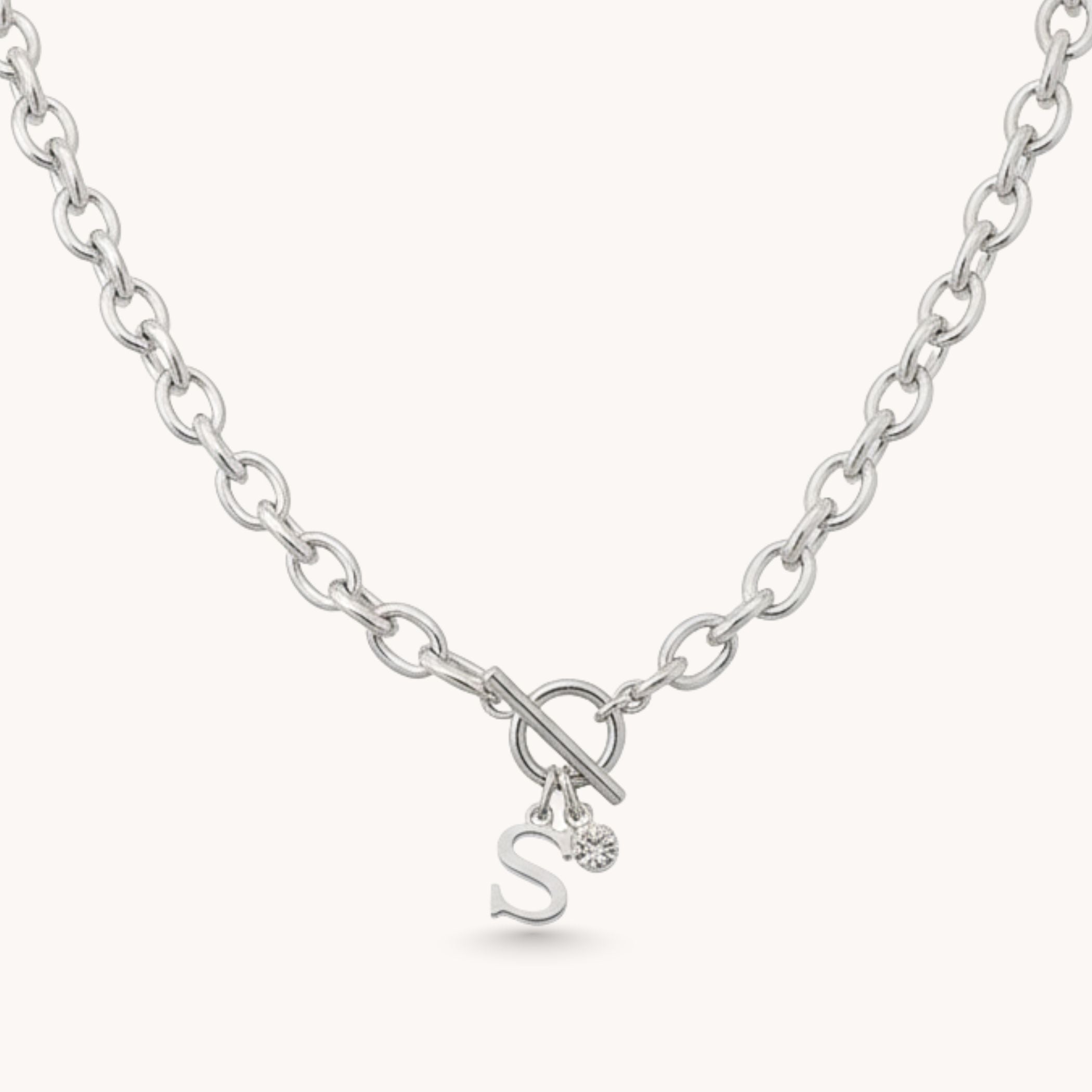 Initial & Birthstone Chunky Necklace in Silver