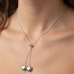 The Twin Hearts Adjustable Necklace in Silver features two interlinked heart pendants suspended from an elegant adjustable chain. A romantic piece that’s perfect for layering or gifting, designed to celebrate connection in style.