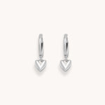 Elegant silver hoops featuring a smooth heart charm for a timeless and sophisticated look.