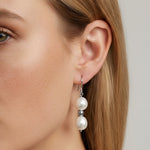 Indulge in luxury with our Sterling Silver Gloria Pearl Hook Earrings. These elegant earrings feature two large round pearls and a delicate bead in the middle, creating a stunning and unique look. Let the lustrous pearls and silver hook design elevate your style and make a bold statement.