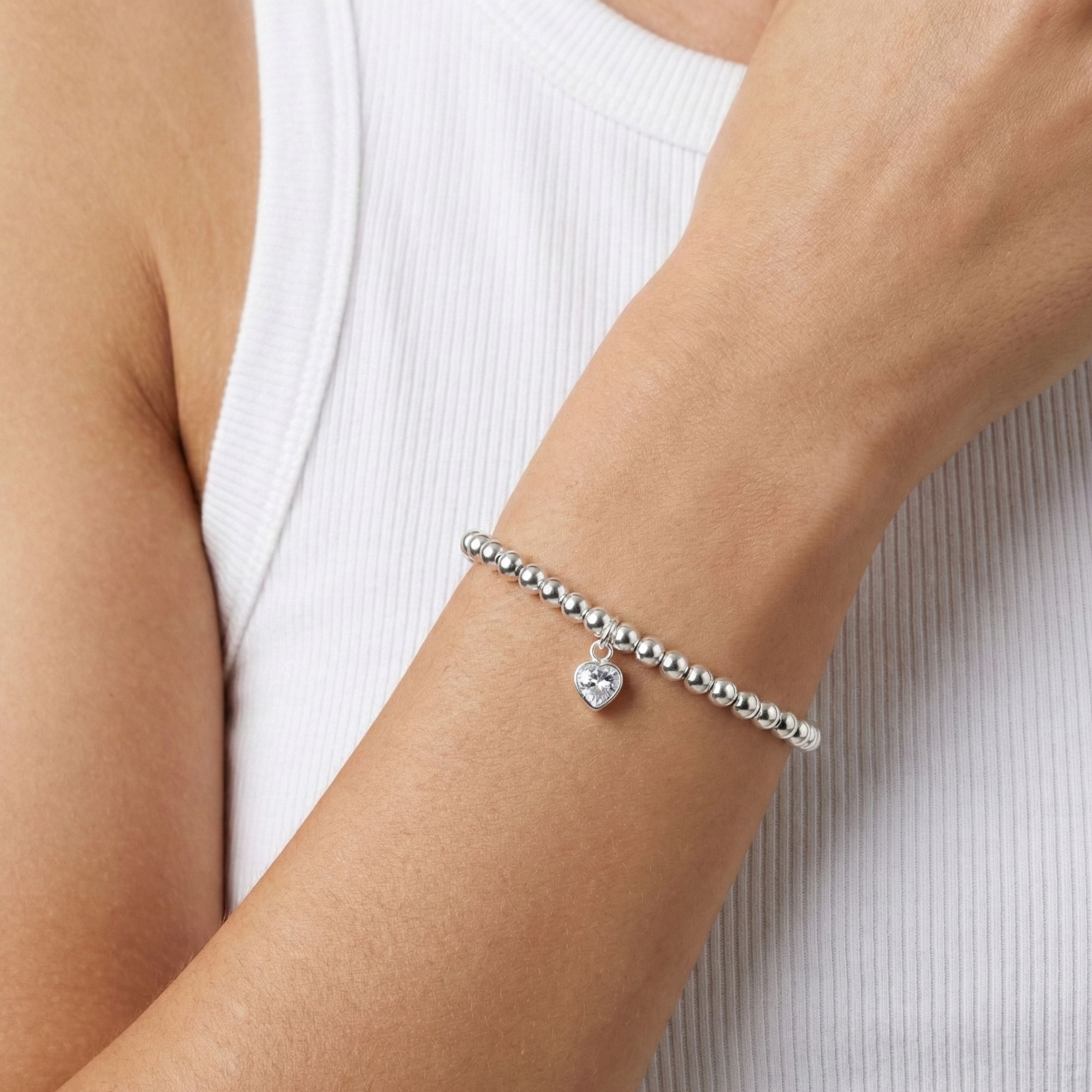 Simple, elegant and full of meaning, this Liv Birthstone Heart Beads Bracelet is handcrafted from solid sterling silver 925 with beautifully polished 4mm beads. A delicate heart shaped birthstone charm adds a personal touch, making it the perfect everyday piece or a thoughtful gift that celebrates someone special.