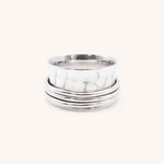 The spinner ring comes from an ancient Tibetan meditation tradition, and is also called a "worry ring" because the motion of spinning the ring is believed to have a calming effect on the mind and body.