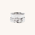 Sterling silver 925 spinner ring.  This stunning ring has a thick hammered band, with two silver rings featuring 2 silver stars.