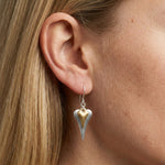 A modern silver and gold heart earring design that combines sentiment and sophistication — ideal for gifting or everyday wear.
