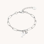 Initial & Birthstone Paperclip Chain Bracelet in Silver