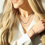 The Layered Snake Chain Bracelet in Silver features two fine snake chains that create a chic, pre-stacked look — offering a modern take on timeless elegance. Crafted from premium stainless steel, it’s waterproof, durable and made to shine for everyday wear.