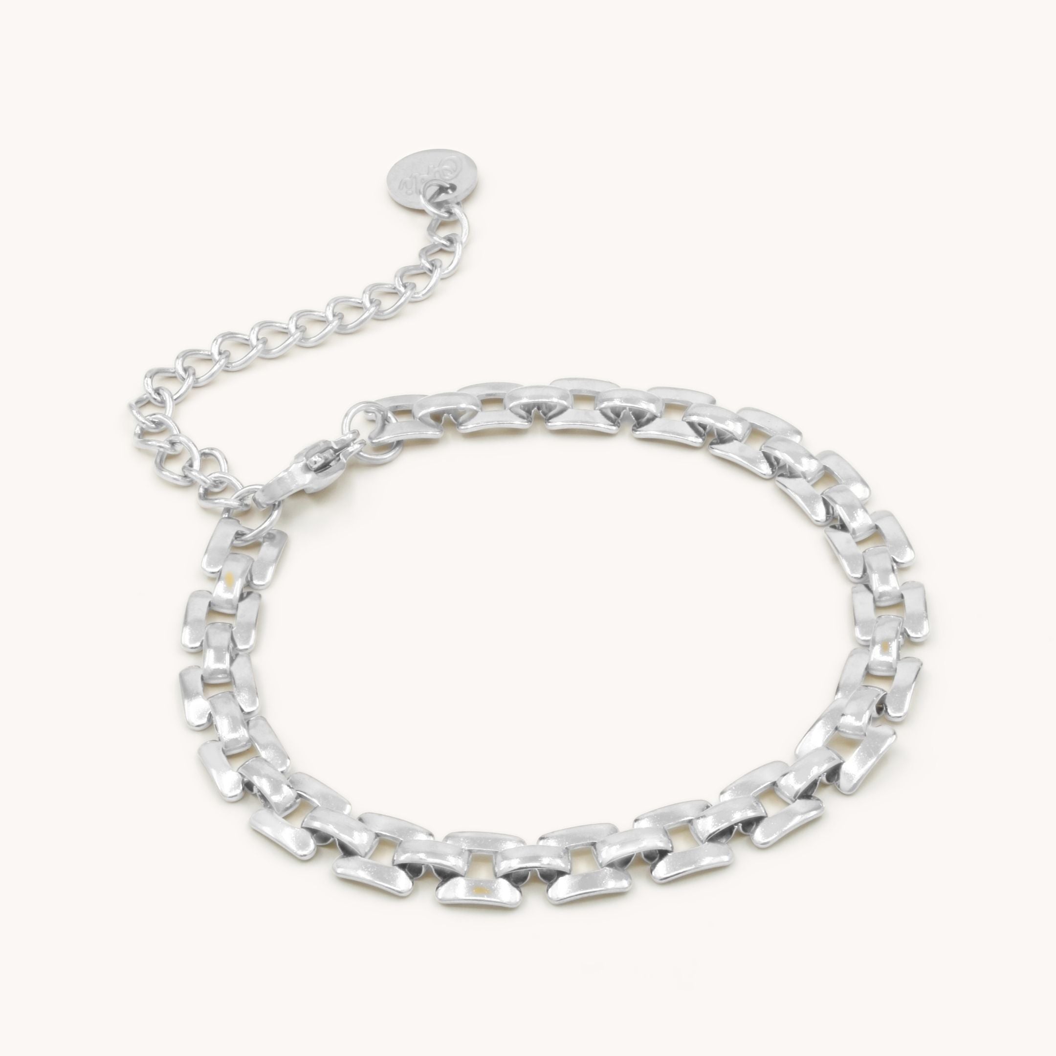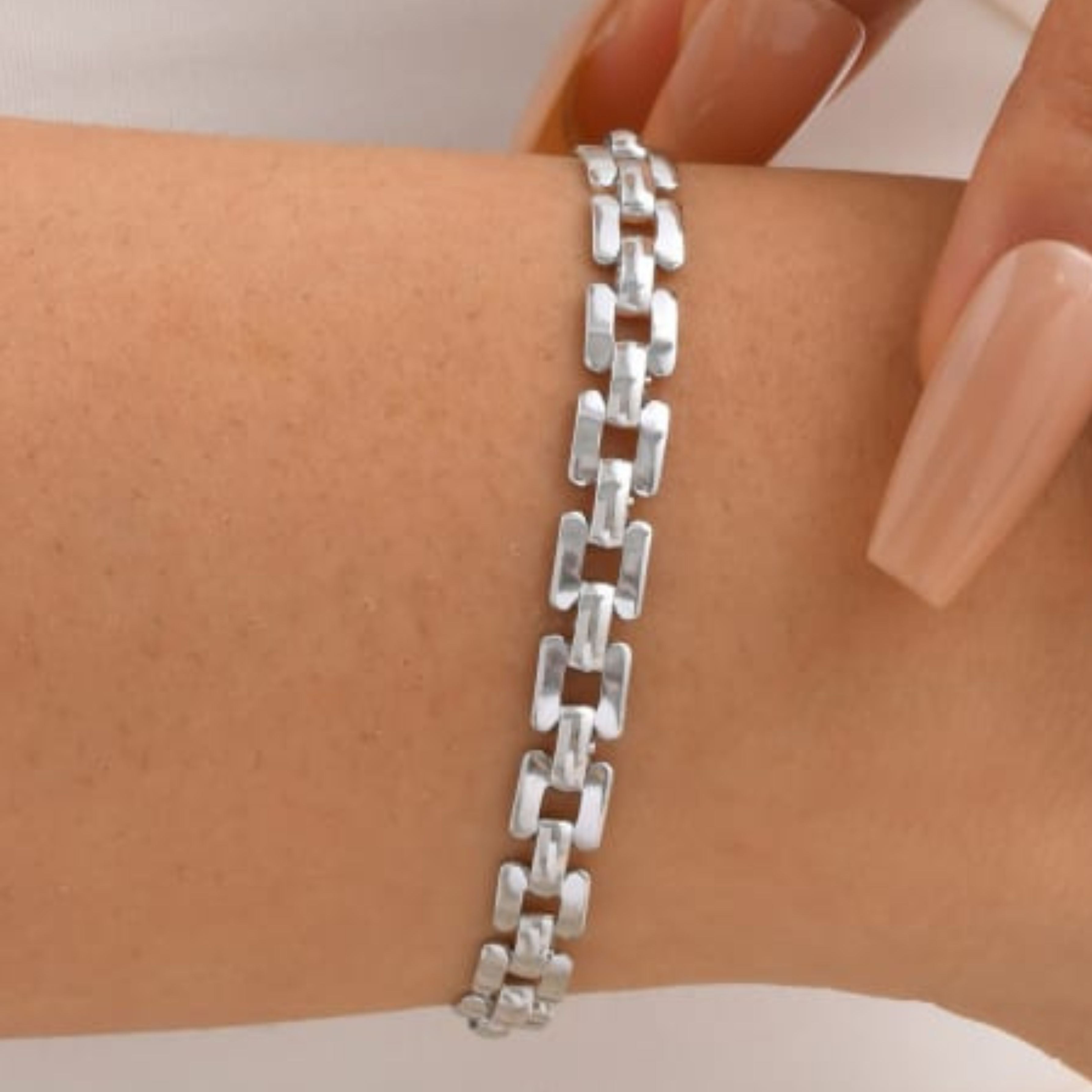 A silver link bracelet with bold, minimal style — a statement piece that elevates any look, day or night.