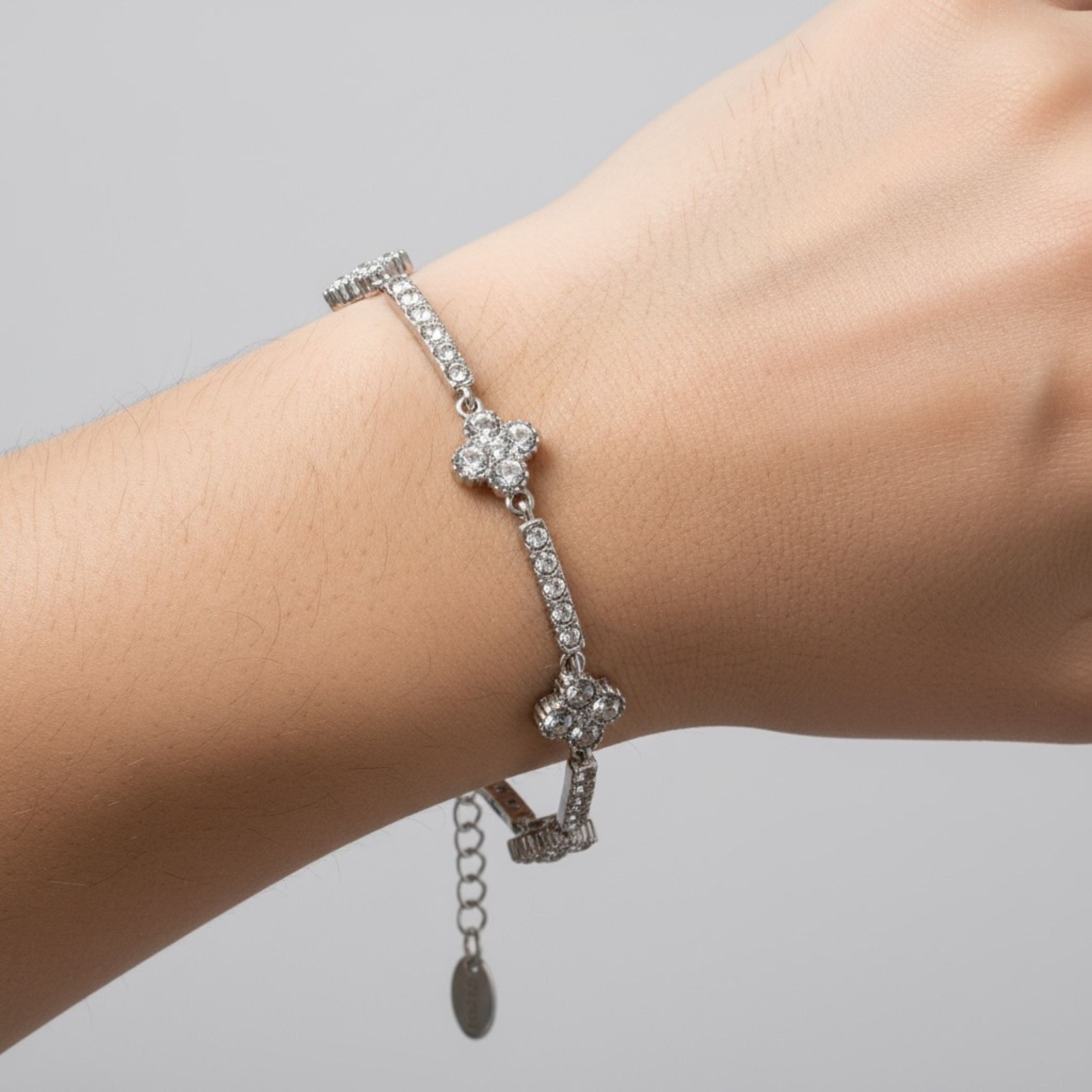 The Multi Clover Tennis Bracelet is designed for those who love balance and brilliance. Featuring alternating clover motifs and shimmering cubic zirconia links, it captures light from every angle.