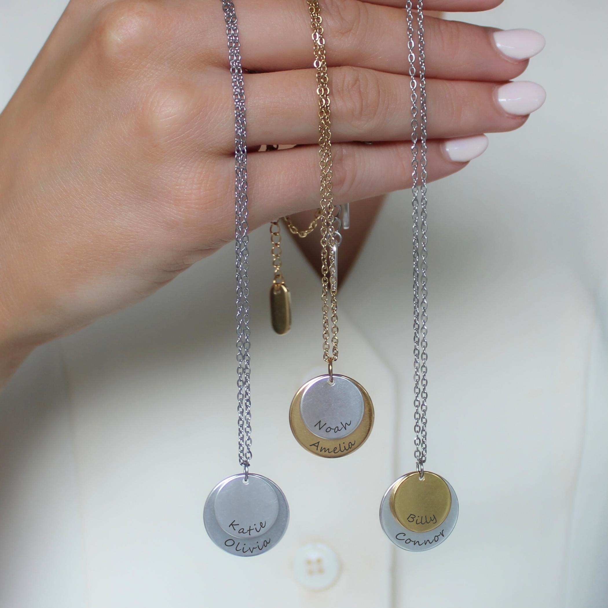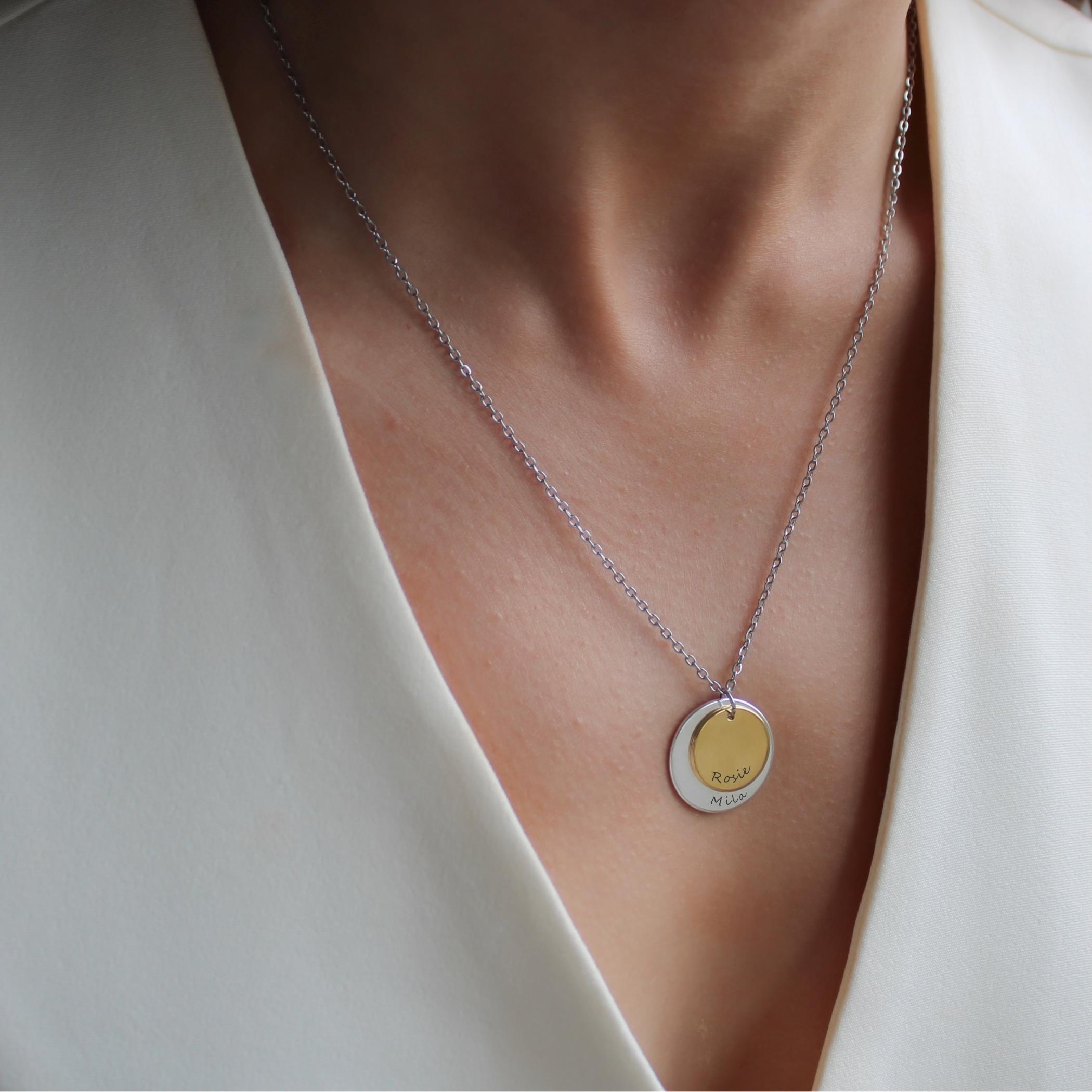 A personalised double disc necklace that captures sentiment and simplicity — a thoughtful gift or keepsake for life’s meaningful moments.