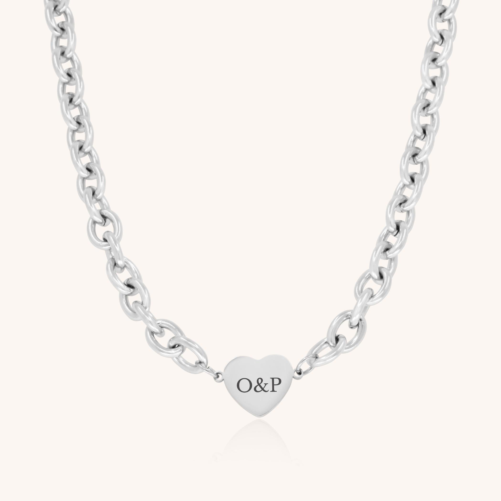 Hourglass Heart Chunky T-Bar Necklace, Gold & Silver