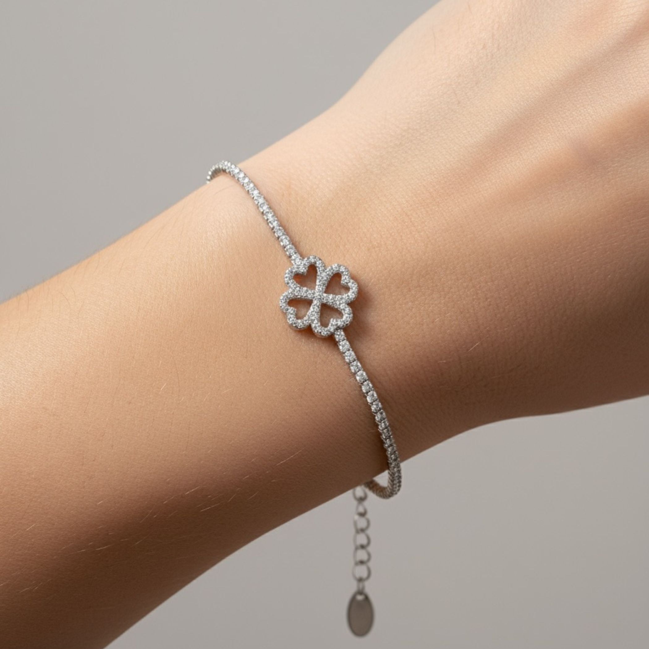 A beautifully crafted clover bracelet that blends effortless shine with everyday elegance.