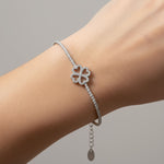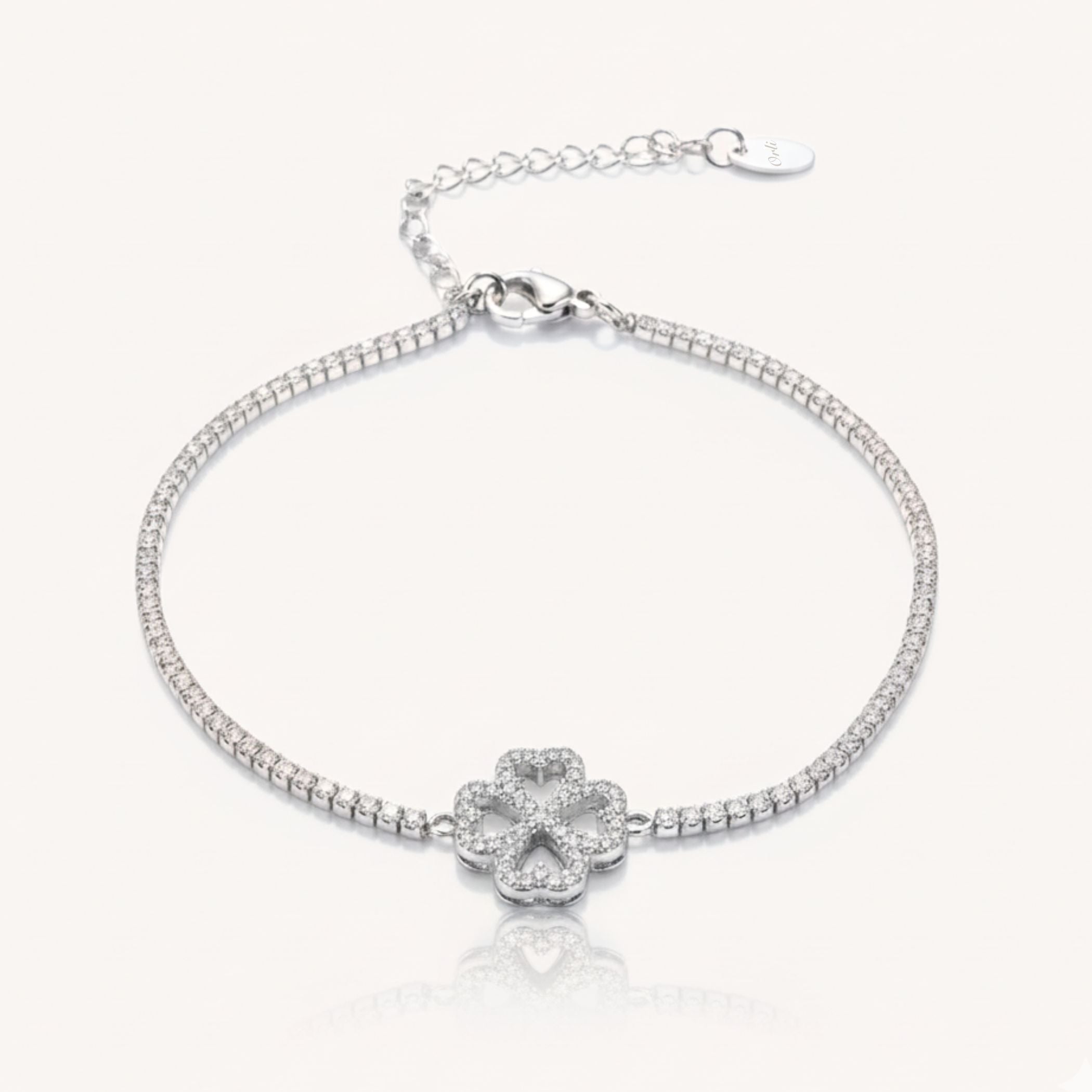 Refined and radiant, the Single Clover Tennis Bracelet pairs a central clover motif with rows of sparkling cubic zirconia stones. A symbol of luck and love, this bracelet adds instant polish to any outfit.