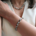 Crafted from polished stainless steel, its geometric link design adds structure and sophistication to your jewellery stack.